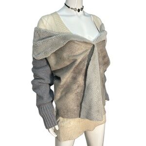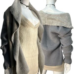 vintage grey knit faux fur cardigan
