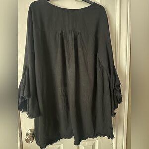 Chic black tunic with flowy sleeves. Perfect for versatile styling.