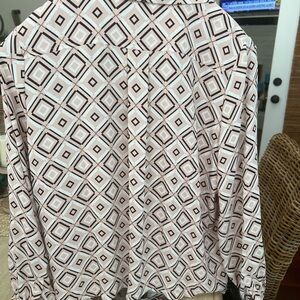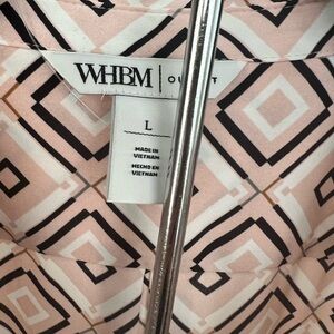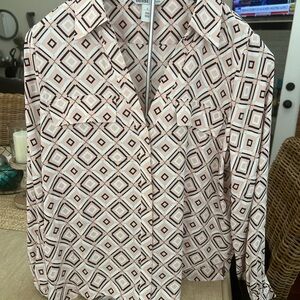 WHBM blouse with a striking geometric design. Features pink and black colors. Sz large. Worn few times. Excellent shape. Sz large