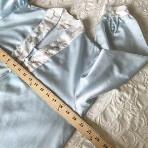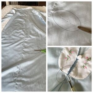 Vtg Jodie Arden Blue Satin Nightgown M Embroidered Floral Scallop Trim Long READ