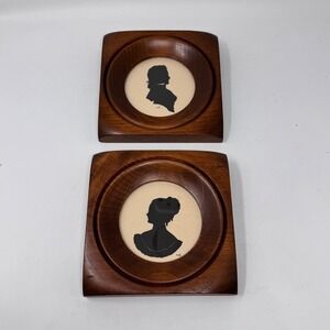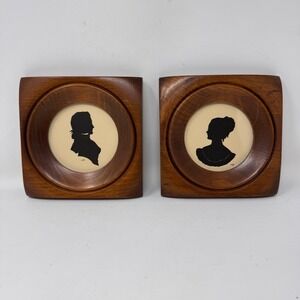 Vintage Aaron Bros. Co. Wood Silhouette Portraits Set of 2 Framed