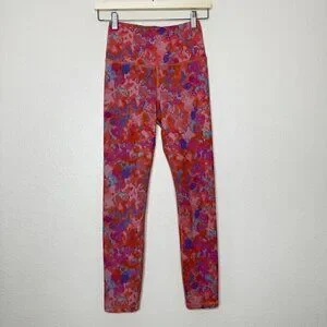 Daily Practice Anthropologie Orange Liana Printed High Rise Compressive Athletic Leggings Size XS