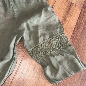 This wide neck off shoulders olive green dress features beautiful lace accents on the sleeves, perfect for casual outings. Enjoy a blend of style and comfort with this chic piece. Only worn once. Looks great with a pair of boots. No belt loops on dress