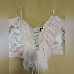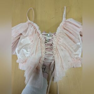 Tags: going out top, ruffles, corset, burlesque, boudoir, pinup, costume, Halloween, cosplay, sexy, pretty, Disney bounding, princess, princesscore, cottagecore, dreamy, Marie Antoinette, French, rococco, Renaissance Faire, unique, club, dance, theater, musical, pink, barbie, girlhood core, girly, summer, spring, date night, valentines day, bachelorette party, crop top, off the shoulder, balletcore, ballet