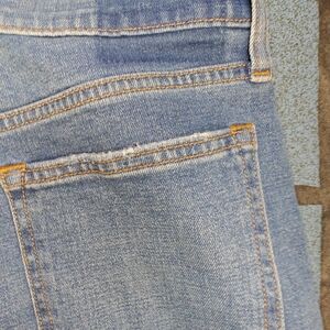 Stylish distressed blue jeans with a trendy look.