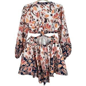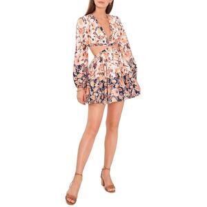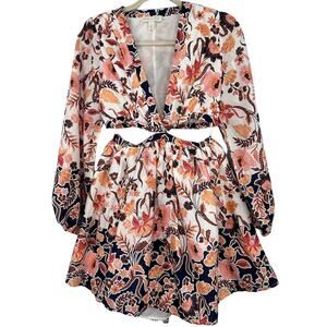 Chelsea & Violet Long Sleeve Floral Batik Print Mini Cut-Out Dress Size 4