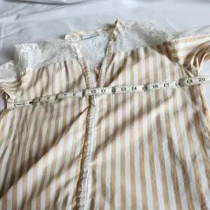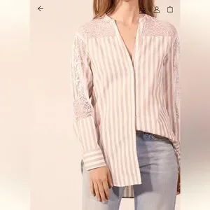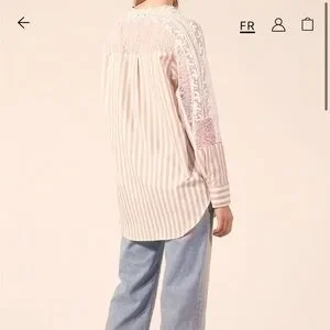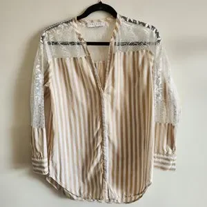 SANDRO I 1 (XS/S) lace and cotton button down shirt I tan and white stripes