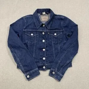 - Brand/Style: Levi’s Signature Women’s Denim Trucker Jacket – Dark Blue Classic Button-Up
