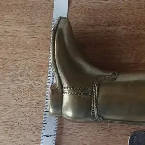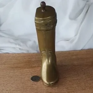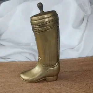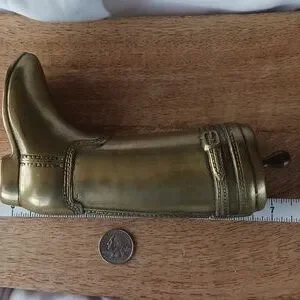 Vintage Brass, made in Korea. Riding Boot Details, flater on 1 side. See photos. Beautiful Brass Patina. About 7.5" tall X 4.5" wide X 1.75" deep.