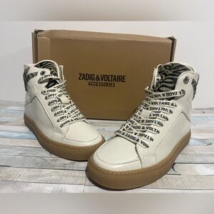 NIB Zadig & Voltaire Woman’s ZV1747 High Flash Zebra Print Sneakers.