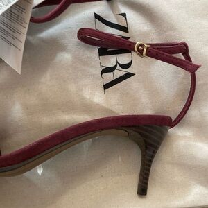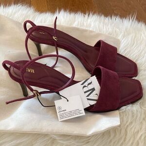 Zara Suede Mid-Heel Ankle Strap Sandals w/Dust Bag