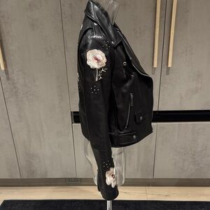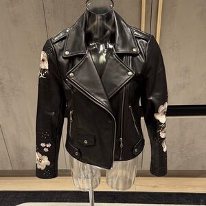 Rebecca Minkoff Black Leather Jacket with Embroidered Floral Accents