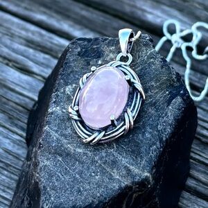 Rose quartz set in a solid oxidize 925 sterling silver design