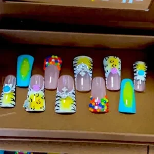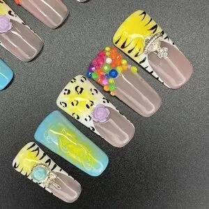 Handmade Ducktail press on Nails. 10 piece with supplies. Reusable. Very beautiful design.