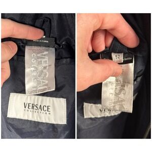 Versace Collection Parka Button Zip Hooded Jacket Navy Blue Men's Sz 52 NWOT