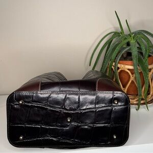 Dooney & Bourke Oakdale Brenna Satchel Croc Embossed Leather Espresso Handbag