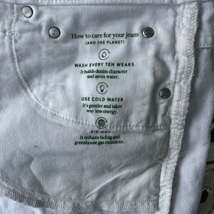 These white jean shorts by J. Crew showcase a trendy distressed cut-off hem, perfect for a laid-back summer vibe. Crafted from medium-weight denim, they offer a bright, fresh look with a casual, worn-in aesthetic.
