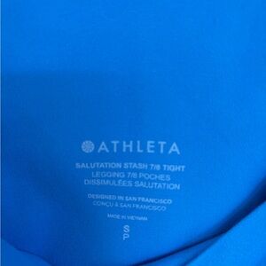 Athleta Salutation Stash 7/8 leggings in bright blue. Ideal for active wear.