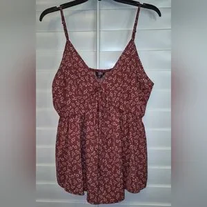 Floral Print Women's Top Maroon Shein Curve 2XL Sleeveless Adjustable Straps