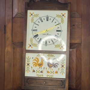 Vintage Seth Thomas Lancaster Farmhouse wall clock, featuring a distinctive rooster and floral design. Excellent condition. Rare Find. $75.