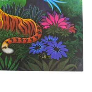 Vtg 1973 K Chin Zebra Tiger Jungle Art Prints 12x9 Pair Colorful Floral Animal