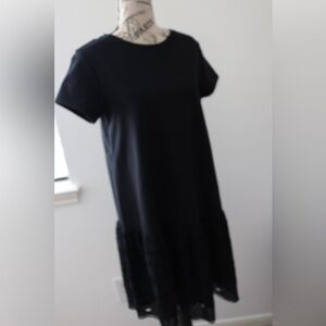 Anthropologie Maeve Flounced Eyelet Mini Dress Size XS Black Embroidery