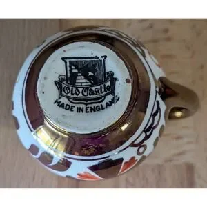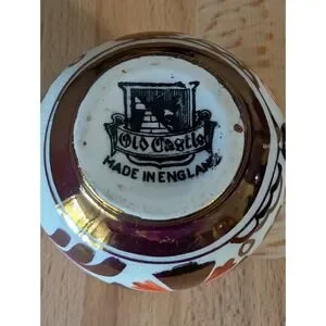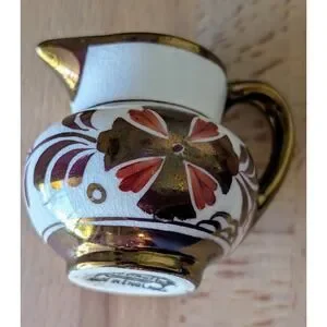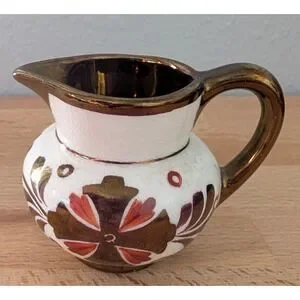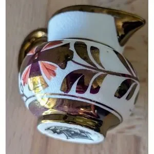 Vintage Old Castle Jug Made in England White & Copper Luster Floral 2 3/8 Inch