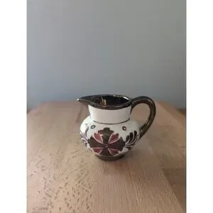 This vintage Old Castle jug, made in England between 1970 and 1979, measuring 2 3/8 inches in height is a beautiful addition to any collection. With a stunning floral pattern in white and copper, this ceramic pitcher is sure to catch the eye.