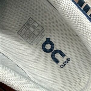 On Running Shoes Wm 8.5 Cloud 5 Blue White Athletic Sneakers **Company branding.