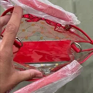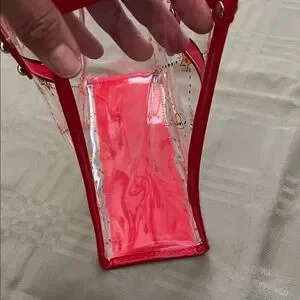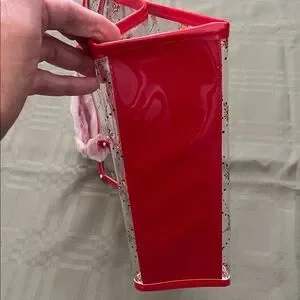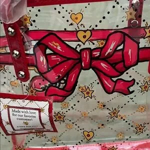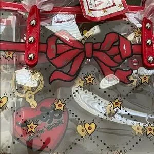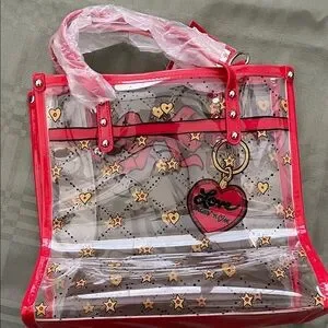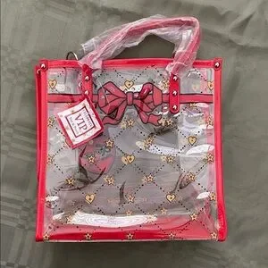 Stylish tote with heart and star design. Perfect for adding flair to any outfit. Clear study bag. Comes with long strap for shoulder or crossbody. Should fit all of your essentials. Medium size. New