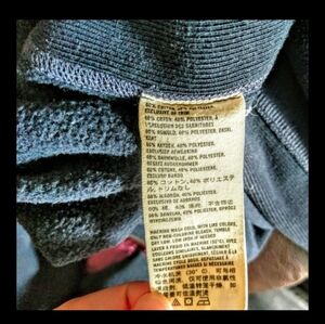 Made in the Phillipines. 60% cotton 40% polyester. Missing the tie around the hood. Length: 21 inches, Arm L: 21", shoulder-s:14.5", P-p:17.5".