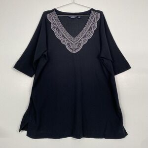 Lands' End Blouse Womens 3X Blue Embroidered V Neck 3/4 Sleeve Tunic Top Cotton