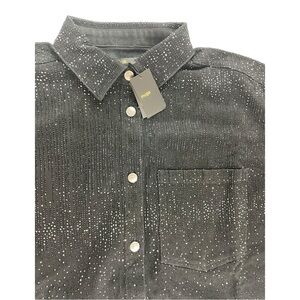 MAJE Rhinestone Denim Shirt Black Wmn’s Sz 3 Straight Cut 125CILLUBLACK $450 NWT. Measurements: PTP = 24”, Waist = 24” and length (from top of shoulder) = 21.5”.