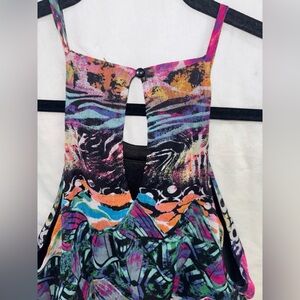 Eye-catching maxi dress with a colorful pattern. Features a halter neckline. Ideal for making a statement.