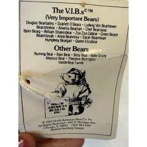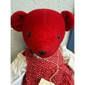 Keywords: Vintage 80s, Collectible Plush, North American Bear Co, VIB Bears, Sarah Bernhardt Parody, Red Teddy Bear, Retro Toy, 1982, Nursery Decor, Kitsch, Nostalgia, Heart Print.