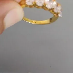 This stunning women's ring features a beautiful combination of gold and silver tones, perfect for any occasion. Its elegant design adds a touch of sophistication to your jewelry collection. Gold over sterling silver band. Stamped 925.