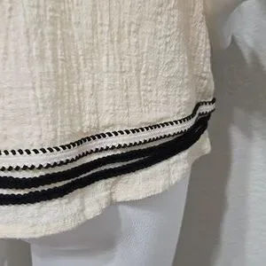 This elegant cream blouse features stylish black accents, perfect for any occasion. Its soft fabric and chic design make it a must-have for your wardrobe.