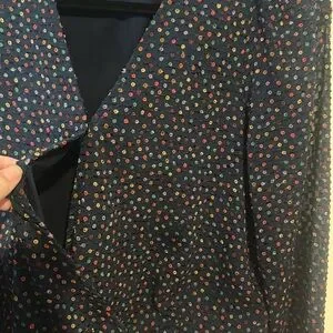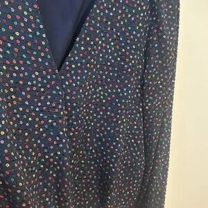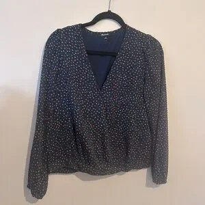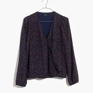 unfussy—wrap top in a sequins-inspired textural rainbow clipdot. With breezy sheer sleeves, puffed-just-enough shoulders and a snap at the waist for a secure fit, it's the perfect way to dress up your favorite pair of high-rise jeans.