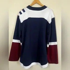 The product is a 2021 Fanatics Colorado Avalanche alternate jersey in size adult large. It is officially licensed by the National Hockey League (NHL) and features the team's colors and logo. The jersey is designed for men and is perfect for showing support for the Colorado Avalanche during the regular season. Made in Indonesia, this jersey is a must-have for any avid hockey fan looking to represent their favorite team in style.
