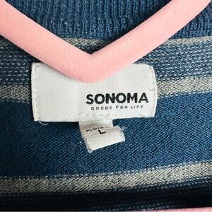 Sonoma Men's Blue and Gray Striped Crewneck Sweater Size Large