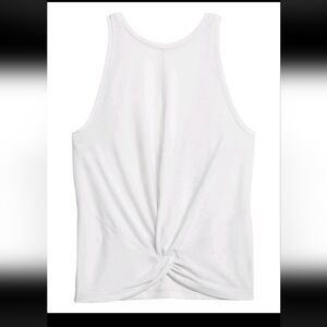 Women’s athletic top in white, size 1X. Pre-owned in very good condition. Features a stylish front tie/knot detail that adds a feminine touch. Comfortable and versatile, perfect for gym, yoga, workouts, or casual wear.