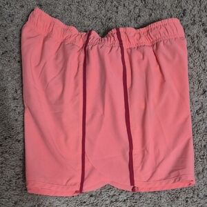 Bright orange athletic shorts with red stripe. Ideal for exercise and leisure. Good condition. Size Small