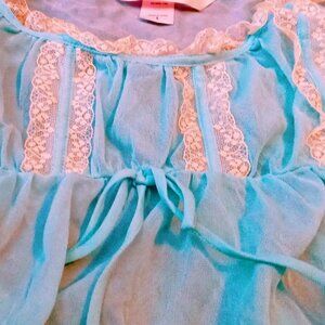 This is a gorgeous vintage Y2K VICTORIA'S SECRET Sheer Baby Blue Babydoll Chemise Negligee Sz L in overall excellent vintage condition & comes from a non-smoking home. Featuring adjustable lace straps and a center bow embellishment. Such a dainty beautiful piece that will make you feel like a princess with ethereal fairy vibes. Wear this on its' own, paired over a bralette in the summer or at home to lounge. Pretty lace detail. It's a 2-piece set that comes with matching panties. Feel free to make a fair offer and add this very sexy outfit to your romantic attire.