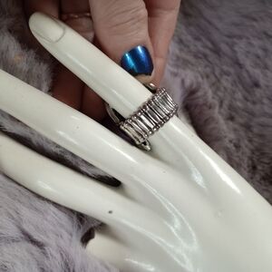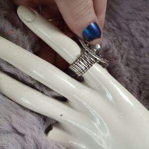 Blessed by Sparkles set of 2 silver adjustable band rings with gem and ornate designs