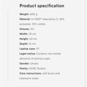 This limited collaboration between Acne Studios and Fjallraven’s iconic backpack uses G-1000 HD S fabric and a bottom panel in a heavy tarpaulin to offer excellent durability and toughness.