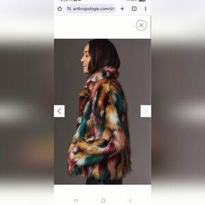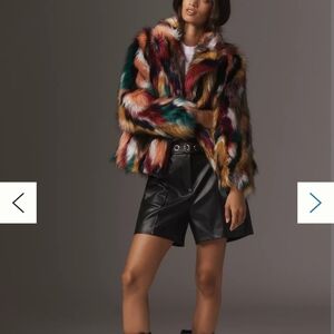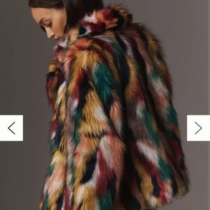 The bold Jones coat by Hutch features vibrant swaths of colorful faux fur.