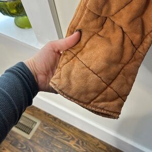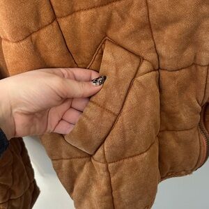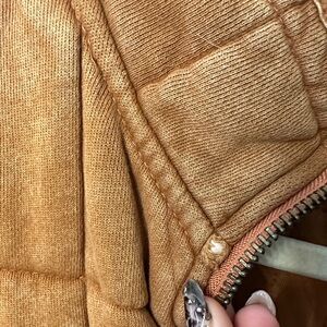 Adorable Orange quilted jacket by free people. Super heavyweight and comfortable. Great condition. Only sign of wear is shown in last picture. Size xs.