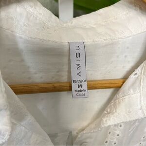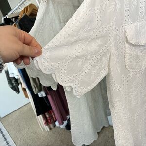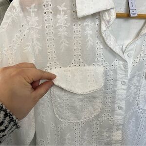 🤍 White Eyelet Embroidered Button-Up Blouse Sz M | 100% Cotton | AMISU