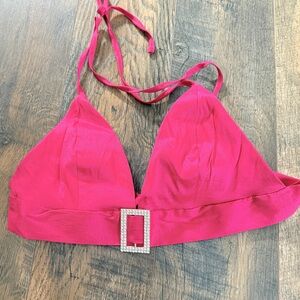 Hot pink rave party set short + triangle rhinestone halter bikini style small