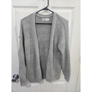 Hollister Womens XS Gray Open Front Pointelle Knit Cardigan Sweater 350S2251